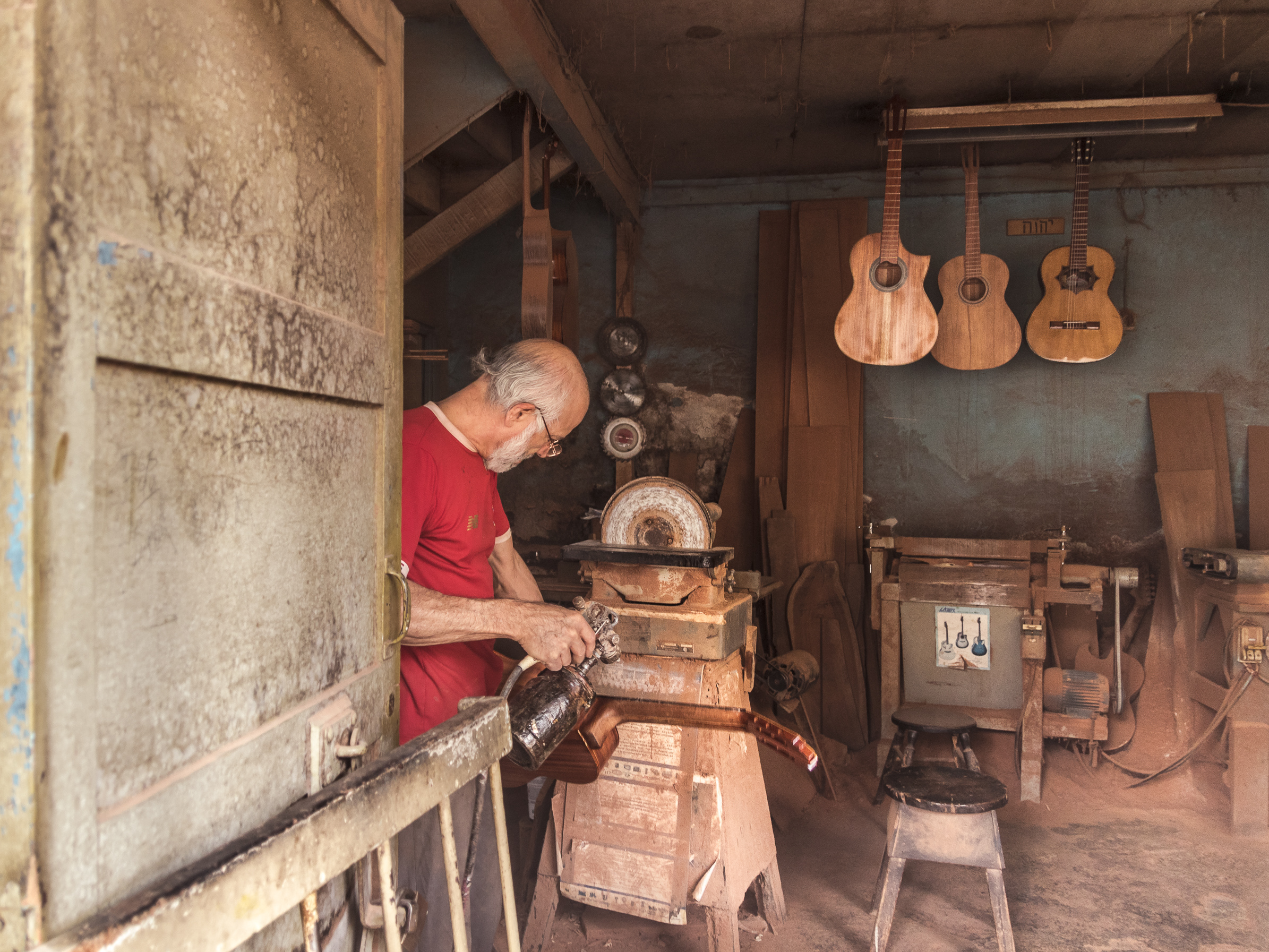 Caminando sobre las calles de San José me encuentro con un espacio cálido y lleno de historias de creación de guitarras hechas a mano por don Olman. Un luthier que por más de 40 años, cada esquina tiene un elemento que don Olman utiliza para crear sus guitarras por más de 40 años, con sus propias manos y diseños creativos, este lugar tiene olor a asserín desde que entras al lugar.